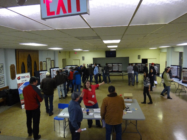In March, community information sessions were held in Southey and Strasbourg, Saskatchewan. Yancoal representatives were present to answer questions about the company, and the Project. Representatives from Golder Associates Ltd. (Golder), the consultant working on the environmental assessment were present to provide support to Yancoal and to answer questions about the environmental assessment. Posters providing information about the Project and the environmental assessment process were displayed around the room and attendees were encouraged to review the posters and ask questions of the Yancoal and Golder representatives.